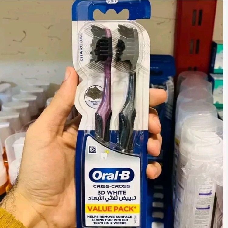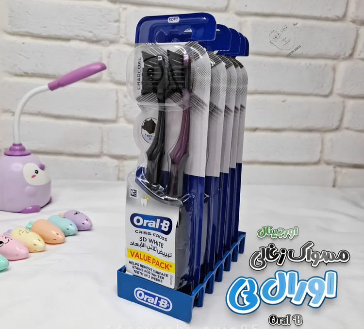 مسواک اورال بی ORAL-B 3D WHITE CHARCOAL ذغالی دوقلو اصل