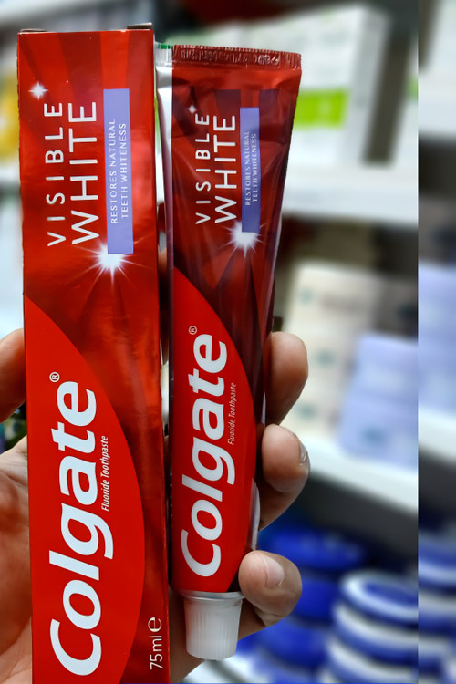 خمیر دندان Colgate مدل VISIBLE WHITE با حجم ۷۵ میلیلیتر، محصولی باکیفیت برای سفید کردن دندانها و بهداشت دهان است.